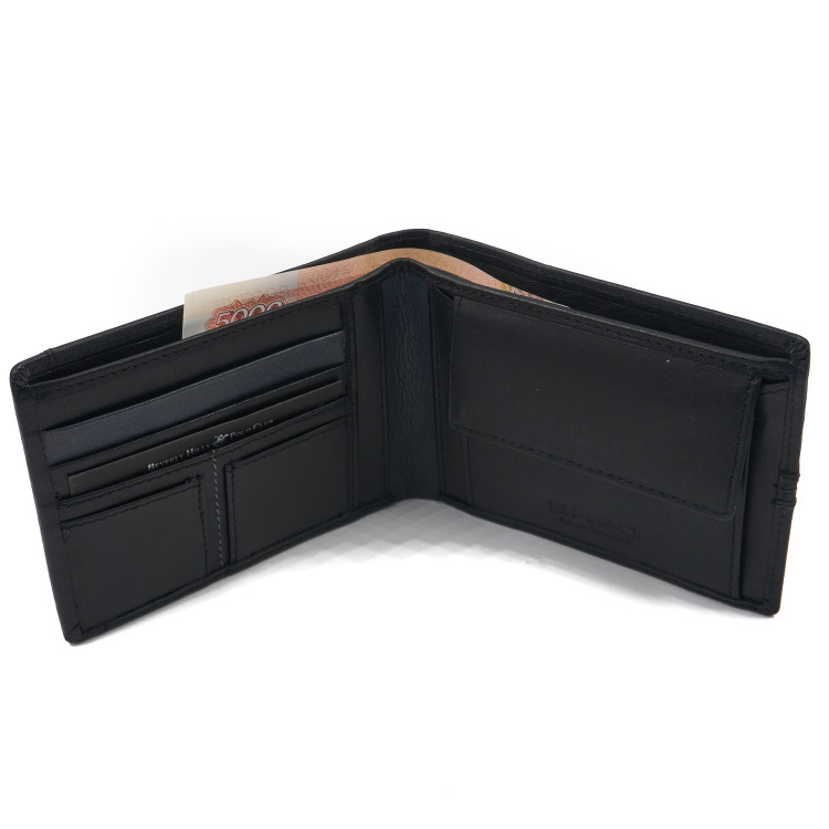 Бумажник Beverly Hills Polo Club BH-1562-NE с отделениями для карточек и монет, натуральная кожа теленка. Цвет: черный