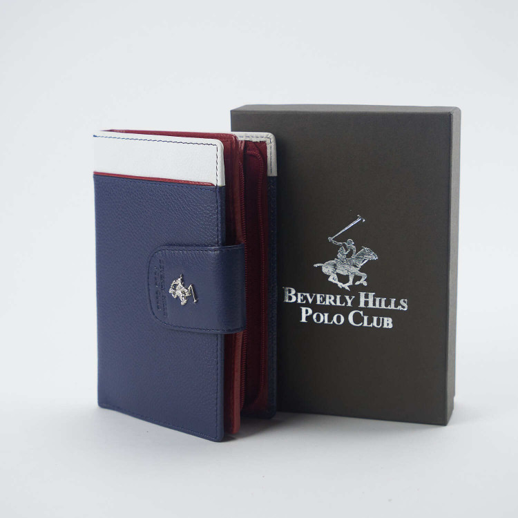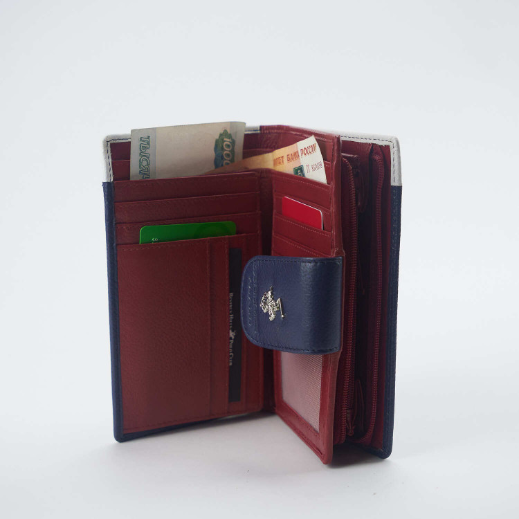 Кошелёк Beverly Hills Polo Club BH-1571-BI, натуральная кожа телёнка. Цвет: синий/красный/белый