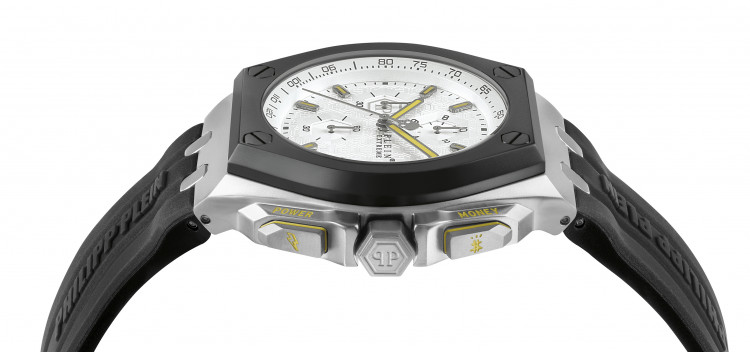 Коллекция PLEIN EXTREME. Стекло: минеральное. Механизм: японский, кварцевый хронограф, дата.